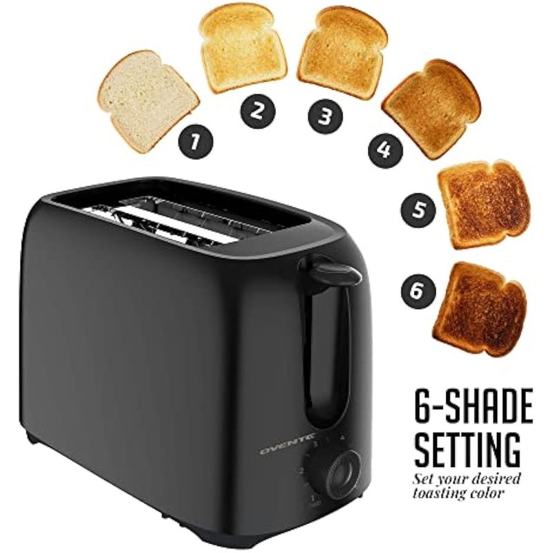 OVENTE Tostadora eléctrica de 2 rebanadas con ajustes de tostadas de 6 tonos, potencia de 700 W,