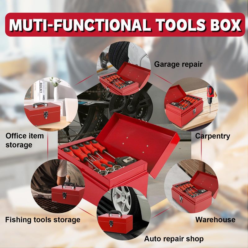 Organizadores y almacenamiento: caja portátil con bandeja extraíble para almacenamiento adicional, esta caja de herramientas de acero duradera es ideal para almacenar varias herramientas, aparejos o manualidades.