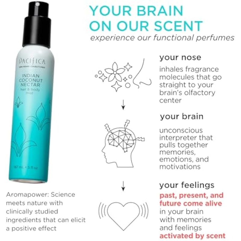 PACIFICA BEAUTY INDIAN COCONUT NECTAR - NIEBLA PARA EL CABELLO Y EL CUERPO, FRAGANCIAS, SPRAY CORPORAL, PERFUME PARA EL CABELLO, CALMA, TIARé, AZúCAR, VAINILLA, ALMENDRA, áMBAR, PERFUME LIMPIO,