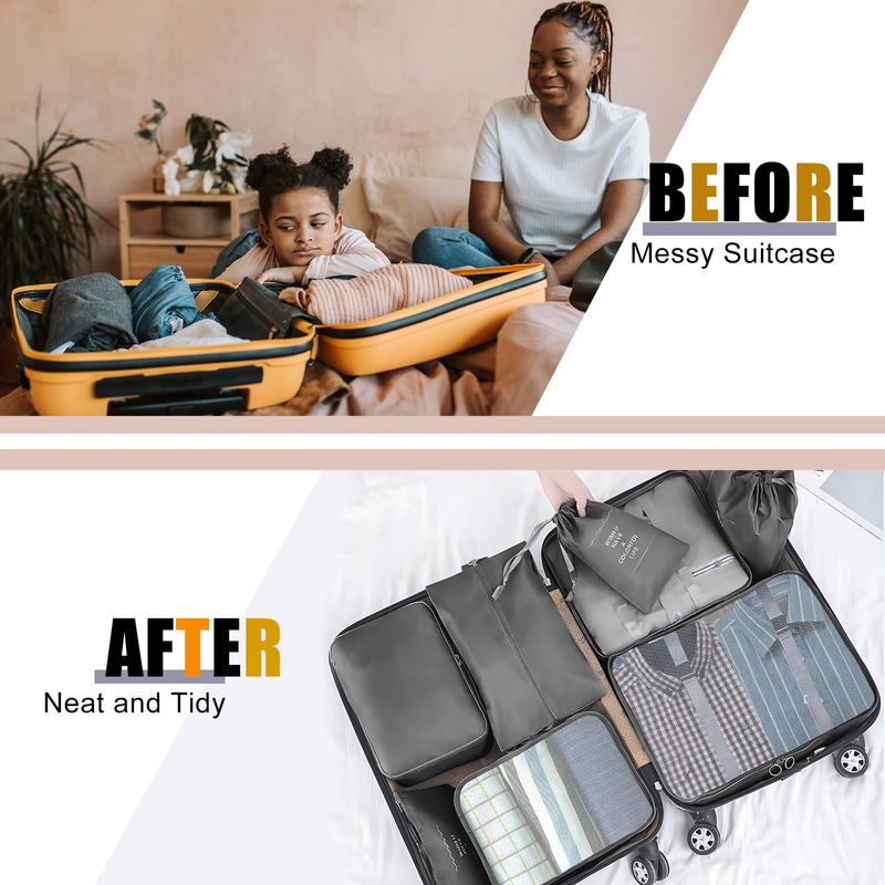 Extreme Space Management: The luggage packing cubes set contains different sizes of mesh, breathable, compressible cubes for your clothes and other essential items you may need during your travels. You have enough luggage organizers and packing cubes to choose from to store them. Keep your clothes and accessories clean and tidy with independent storage. These bags will prevent your clothes from getting messed up by movement in your suitcase whilst traveling.
