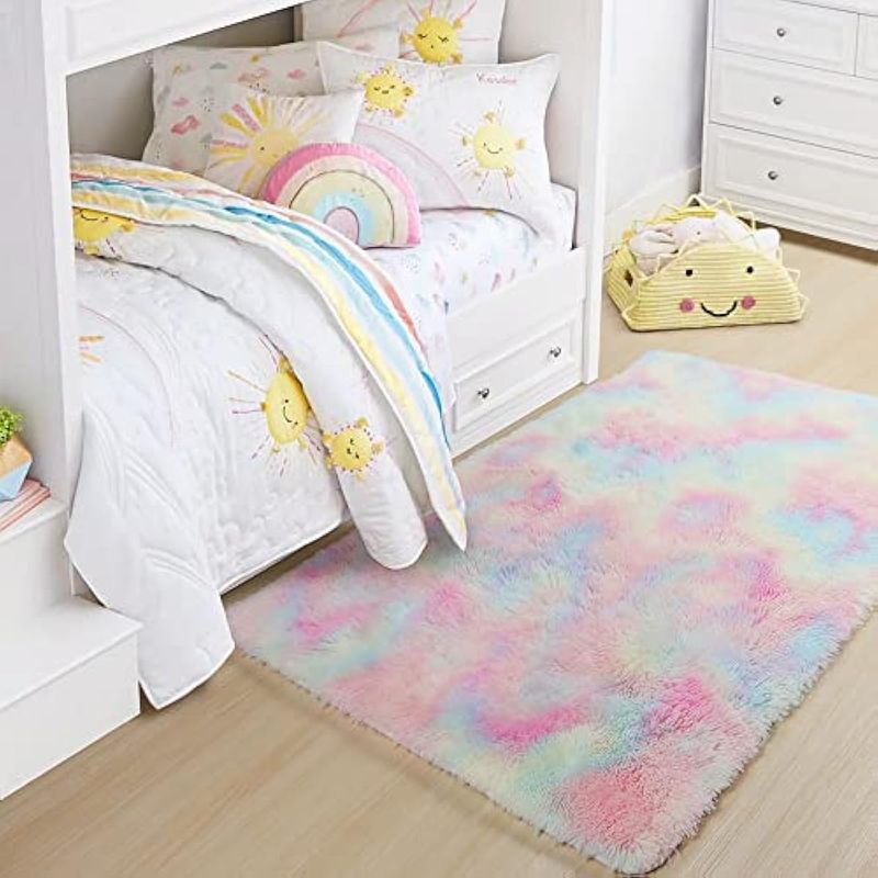PAGISOFE Alfombra de arco iris suave y esponjosa de 3 x 5, alfombra de dormitorio para dormitorio de
