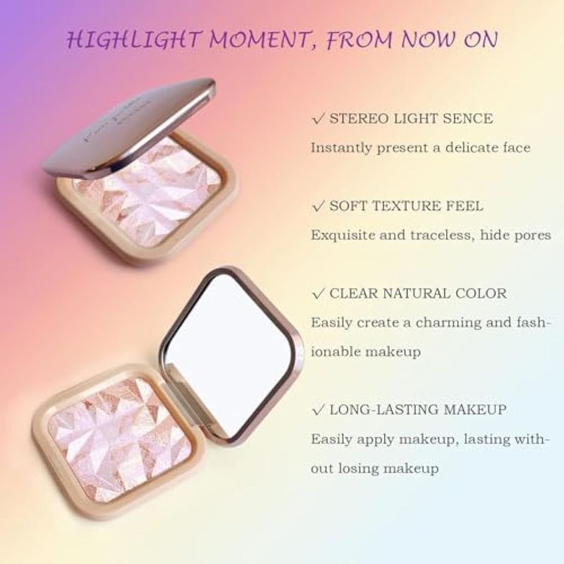 ?Suave y de larga duración?- Este resaltador en polvo tiene una textura suave súper sedosa, la luz golpea naturalmente tu cara y logra esa cobertura sin costuras, y estructurado sin demasiado dramático o grueso. Tiene una buena reproducción de color, puede iluminar instantáneamente la piel, cubrir los defectos.