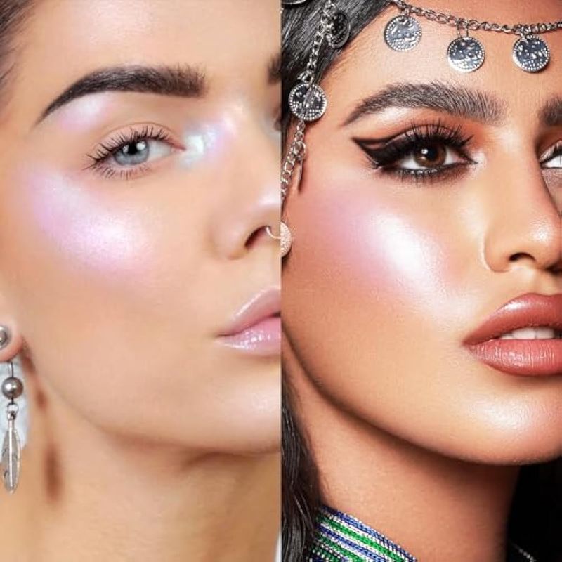 Maquillaje natural brillante: las paletas de maquillaje iluminadoras LSxia están hechas con tecnología italiana de polvo de hornear, transparente y natural, mostrando un maquillaje brillante tridimensional.