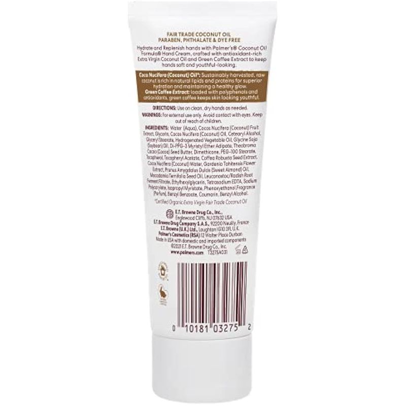 Palmer's Crema hidratante de manos con fórmula de aceite de coco, 3.4 onzas