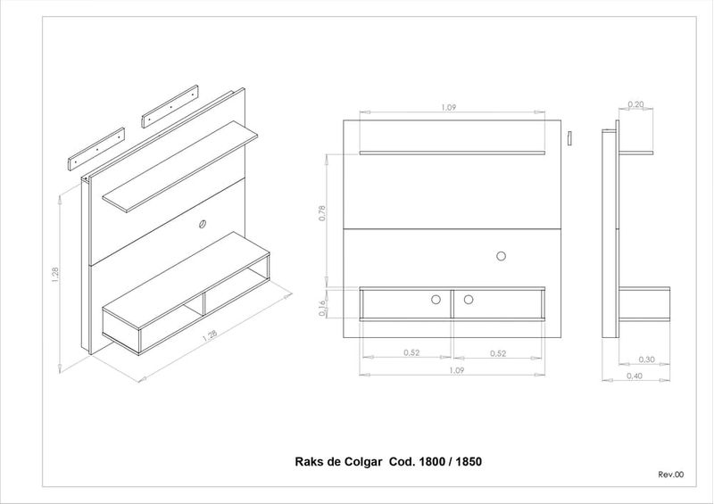 Panel Rack Flotante para TV con Estantes y Nichos - 1850