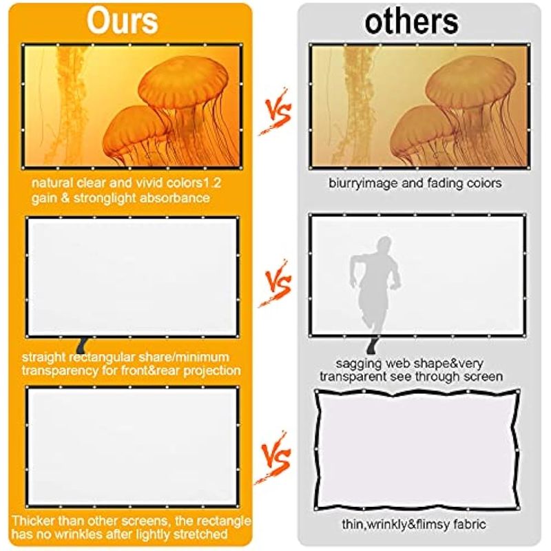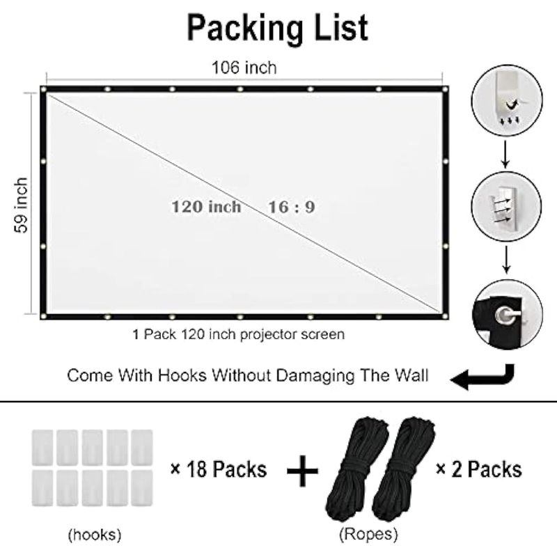 Pantalla de proyector blanca de 120 pulgadas, pantalla de proyección AAJK 16:9 HD, pantalla de
