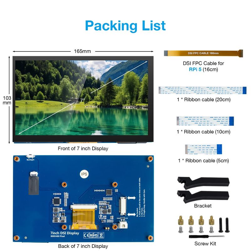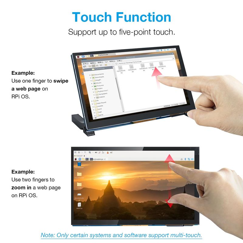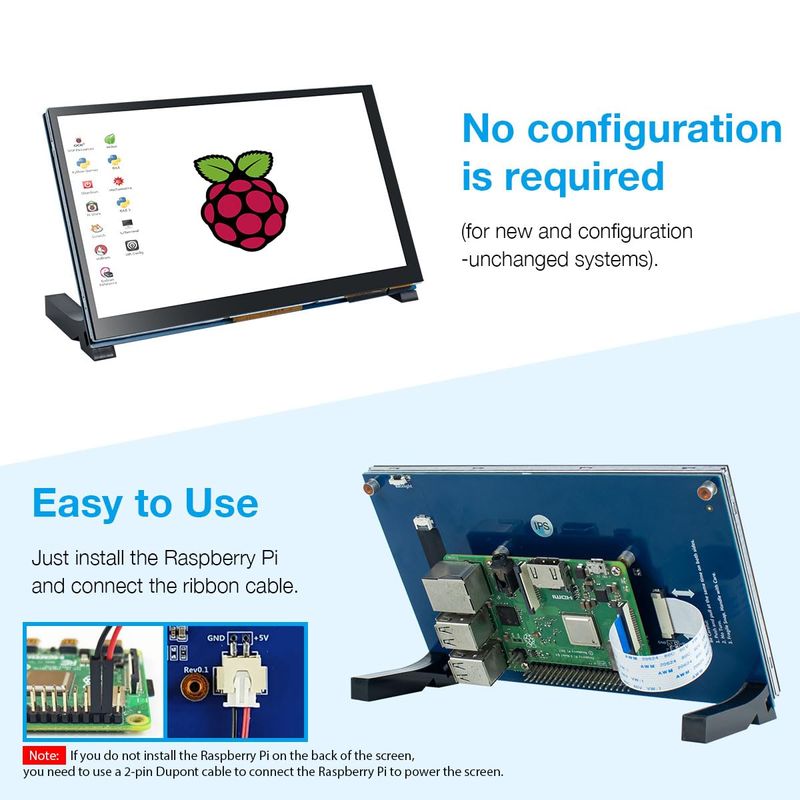 Pantalla táctil IPS DSI de 7 pulgadas compatible con Raspberry Pi 5/4/3, pantalla capacitiva de