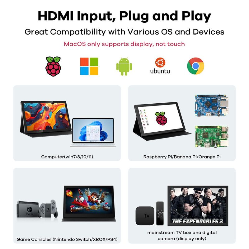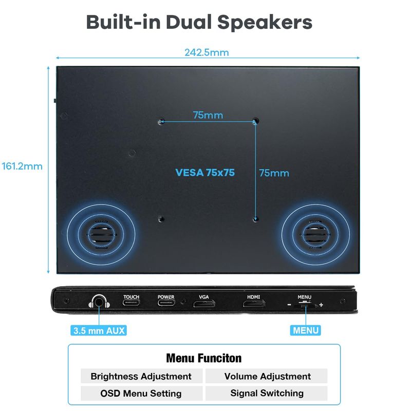 INFORMÁTICAMONITORESPantalla táctil LCD de 10.1 "Monitor IPS 1280x800 Pantalla portátil HDMI Altavoces incorporados