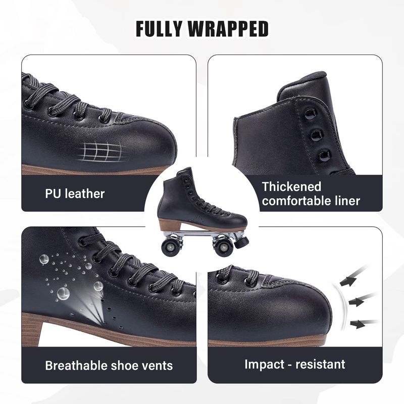 PAPAISON Patines de ruedas para mujeres y hombres, de lujo, de 2 capas, de cuero de microfibra, de