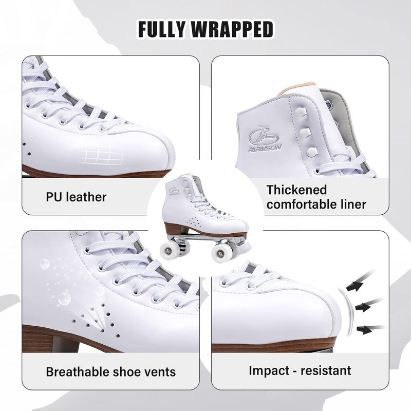 PAPAISON Patines de ruedas para mujeres y hombres, de lujo, de 2 capas, de cuero de microfibra, de