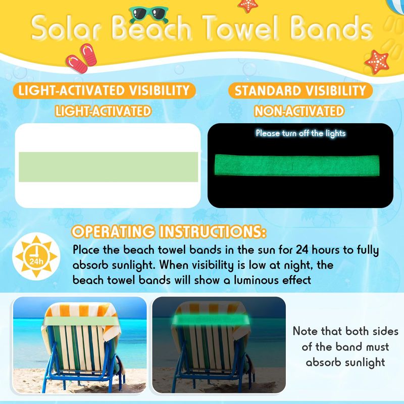 Paquete de 12 bandas de toalla para sillas de playa, clips de toalla para sillas de piscina con