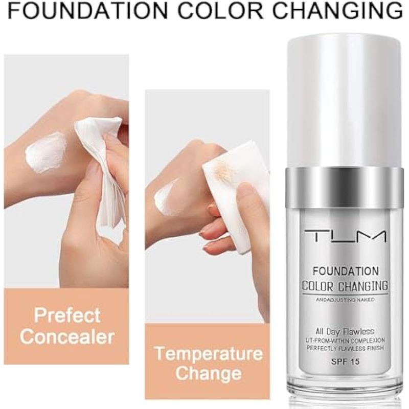 PAQUETE DE 2 BASES LíQUIDAS TLM QUE CAMBIAN DE COLOR, CREMA TLM CONCEALER COVER CREAM, TONO DE PIEL CáLIDO TODO EL DíA, BASE DE MAQUILLAJE BB CREAM PARA TODAS LAS PIELES SPF15