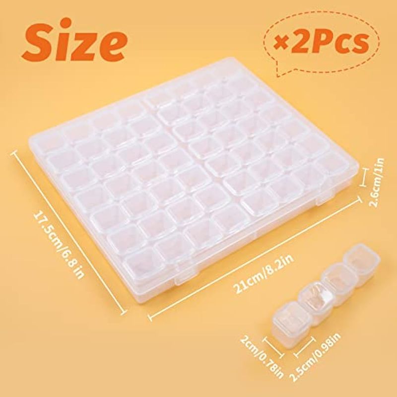 PAQUETE DE 2 CAJAS ORGANIZADORAS DE PLáSTICO DE 56 REJILLAS, CONTENEDOR ORGANIZADOR DE JOYAS TRANSPARENTE, DIVISOR AJUSTABLE, REJILLA EXTRAíBLE, CUENTAS DE PINTURA DE DIAMANTE, HERRAMIENTAS DE ARTE DE UñAS, MANUALIDADES, PEQUEñOS ACCESORIOS