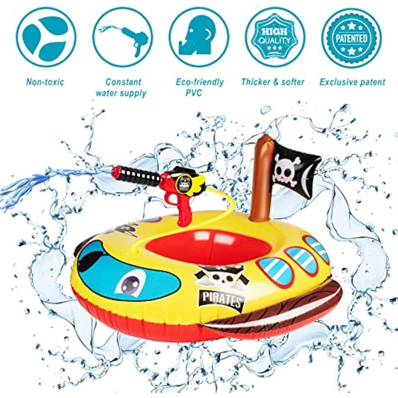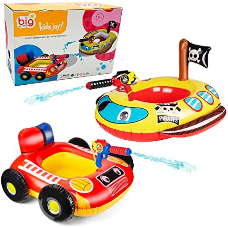 PAQUETE DE 2 FLOTADORES INFLABLES PARA PISCINA CON PISTOLA DE AGUA, CAMIóN DE BOMBEROS Y BARCO PIRATA PARA NIñOS PEQUEñOS, JUGUETES DE PISCINA INFLABLES PARA NIñOS PEQUEñOS, DIVERTIDOS FLOTADORES EN FORMA DE BARCO PARA NIñOS Y NIñAS