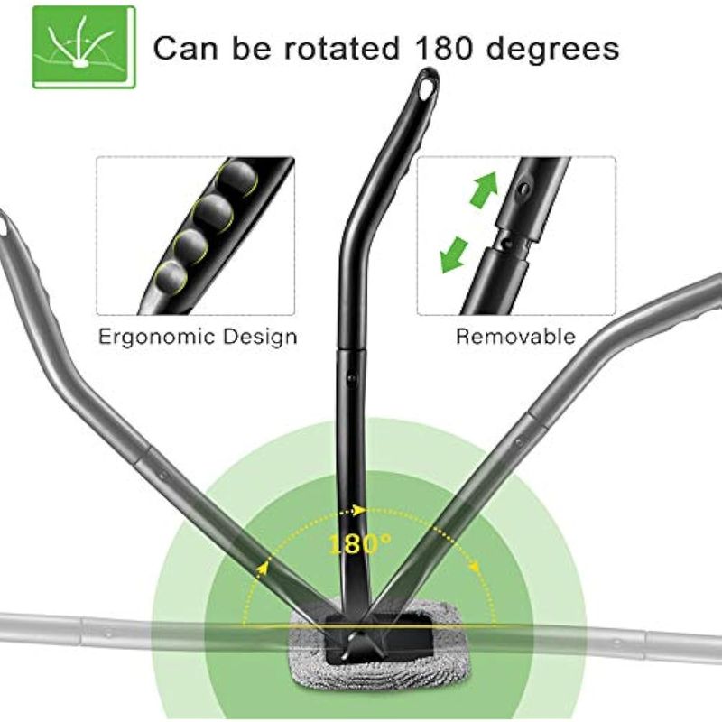 Práctico cabezal giratorio: el limpiador de ventanas de automóvil está diseñado con cabezal de varita de limpieza de automóvil que se puede girar 180 grados para adaptarse muy bien a la superficie curvada de vidrio, eliminando la suciedad y el polvo de los parabrisas del automóvil o vidrio, ahorrando más esfuerzo