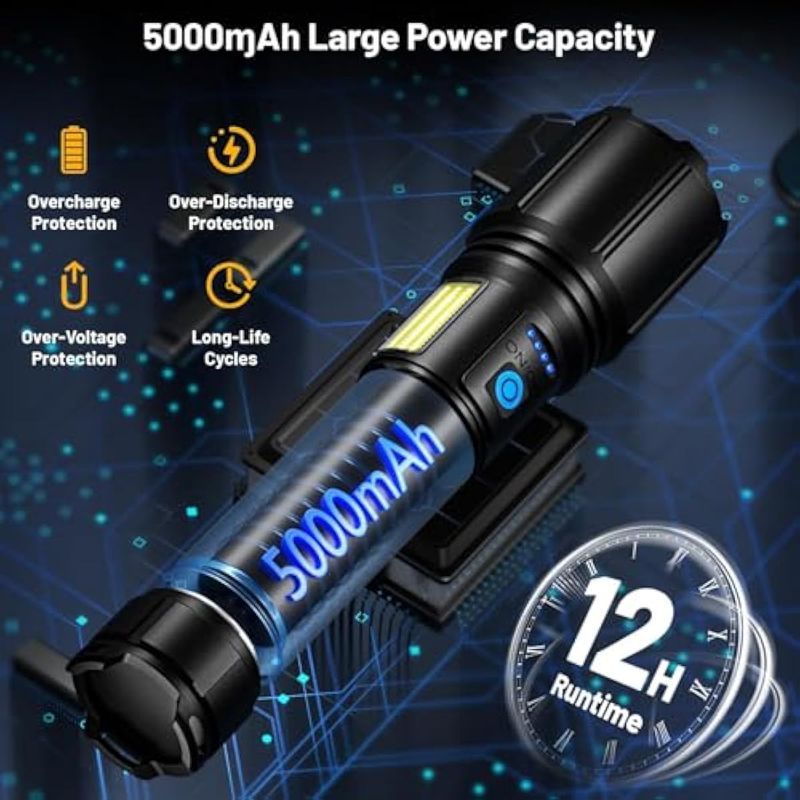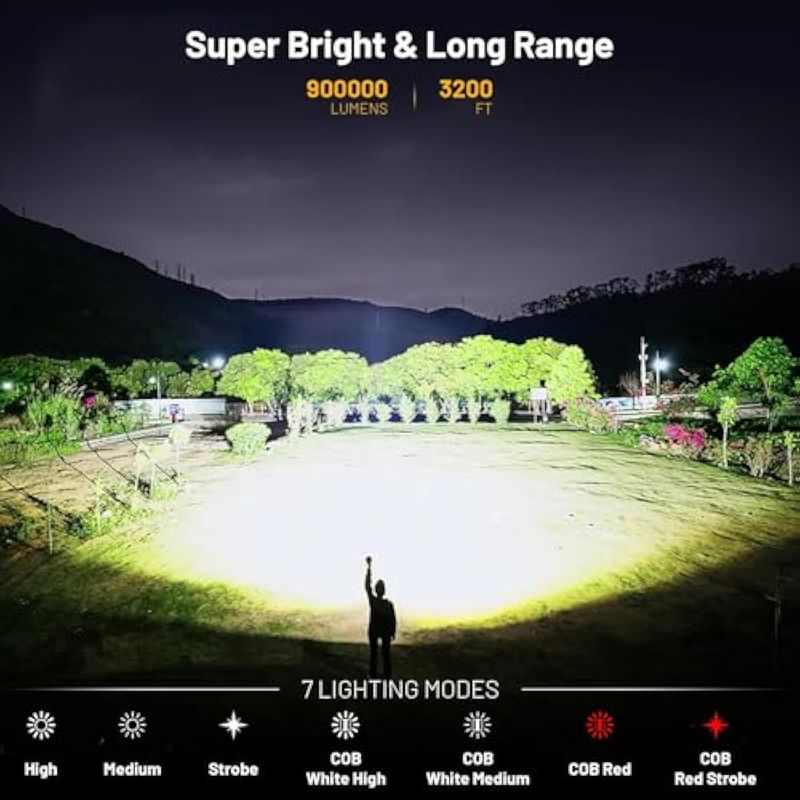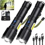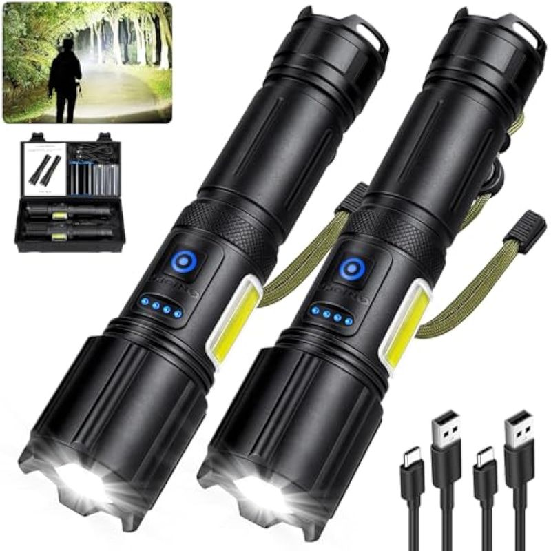 Paquete de 2 linternas recargables de alto lúmenes, 900.000 lúmenes, linterna LED súper brillante, 7