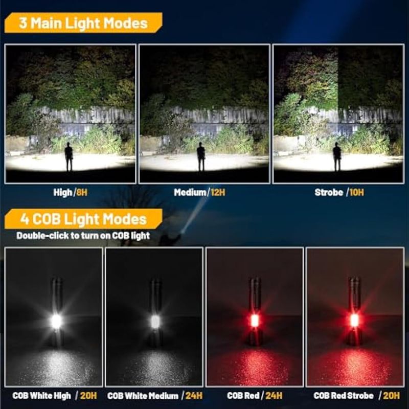 JARDÍNCAMPINGLINTERNASPaquete de 2 linternas recargables de alto lúmenes, 900.000 lúmenes, linterna LED súper brillante, 7