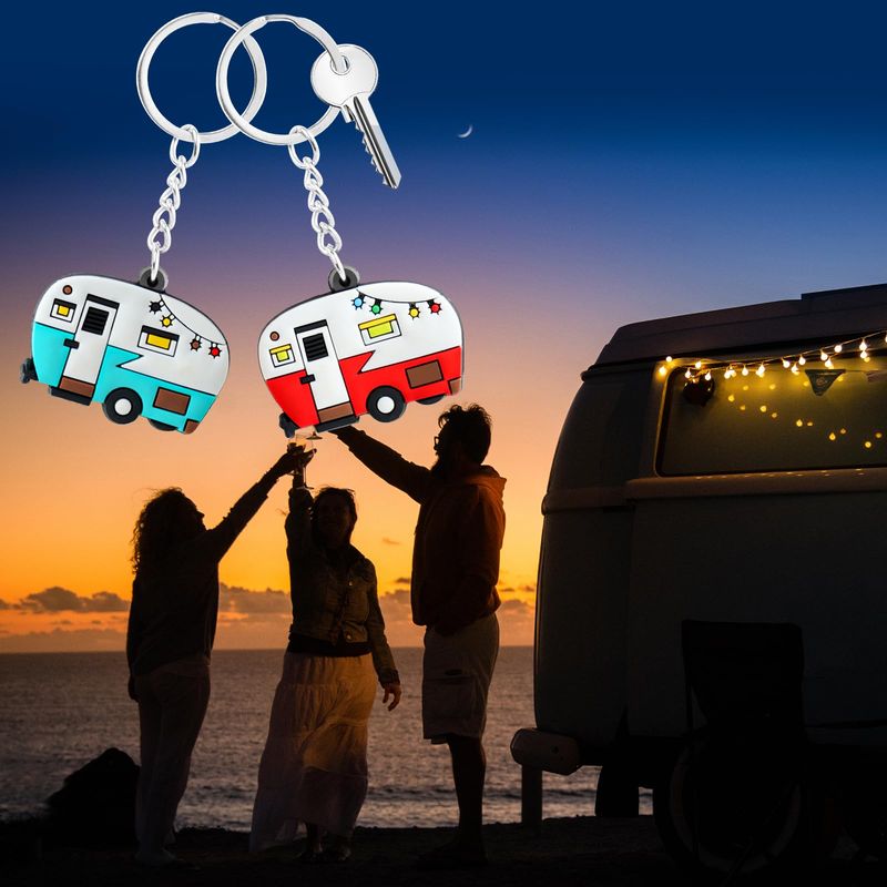 RODADOSHERRAMIENTAS PARA AUTOPaquete de 2 llaveros de doble cara para cámper, para parejas, regalos de campamento para hombres y