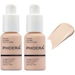 Paquete de 2 piezas PHOERA Foundation 101 de maquillaje de porcelana, base de cobertura completa