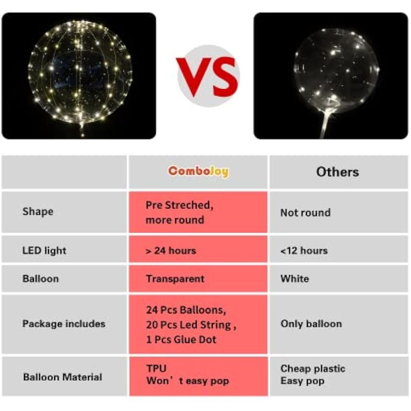 PAQUETE DE 20 GLOBOS LED ILUMINADOS CON LUCES BLANCAS CáLIDAS, 24 GLOBOS TRANSPARENTES DE 20 PULGADAS Y 20 LUCES LED, SUMINISTRO PERFECTO PARA BODAS, FIESTAS DE CUMPLEAñOS, FIESTAS DE PALO