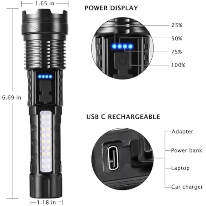 Paquete de 3 linternas recargables, 7 modos, linternas tácticas de alto lúmenes 980000, linterna