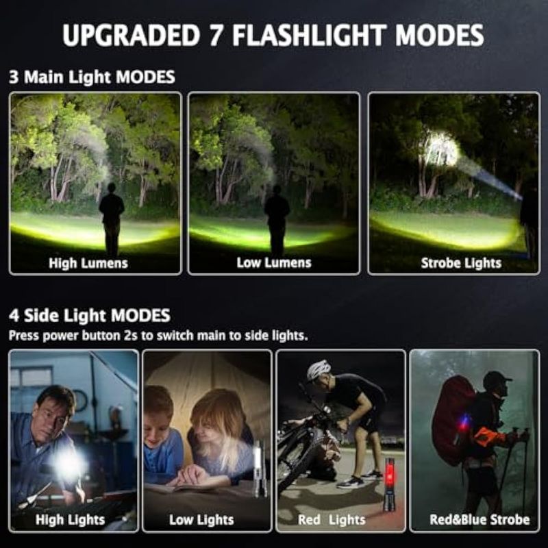 JARDÍNCAMPINGLINTERNASPaquete de 3 linternas recargables, 7 modos, linternas tácticas de alto lúmenes 980000, linterna