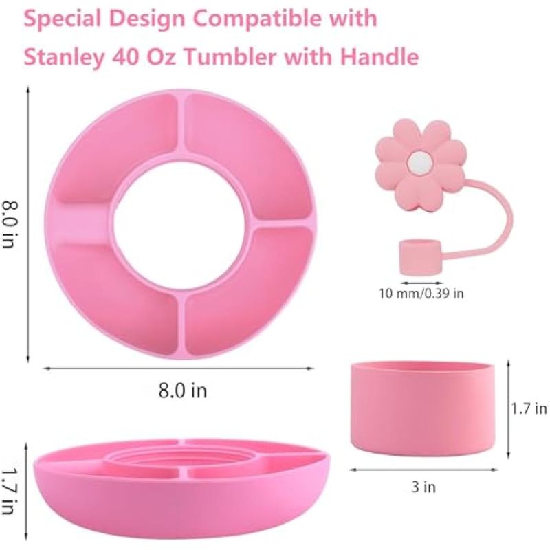 Paquete de 3 vasos compatibles con Stanley de 40 onzas con asa, funda de popote de silicona para