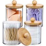 HOGARBAZARDECORACIONPaquete de 4 dispensadores Qtip con tapas de bambú, recipientes de plástico transparente de 10 onzas
