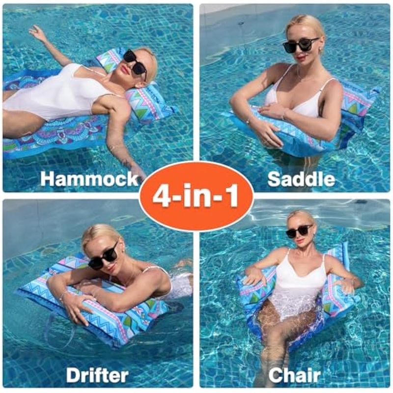 Paquete de 4 hamacas de piscina, flotadores inflables de piscina para adultos, balsas de natación