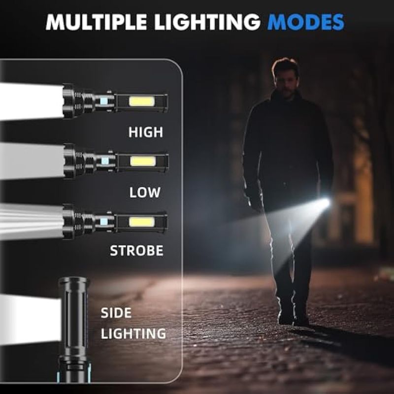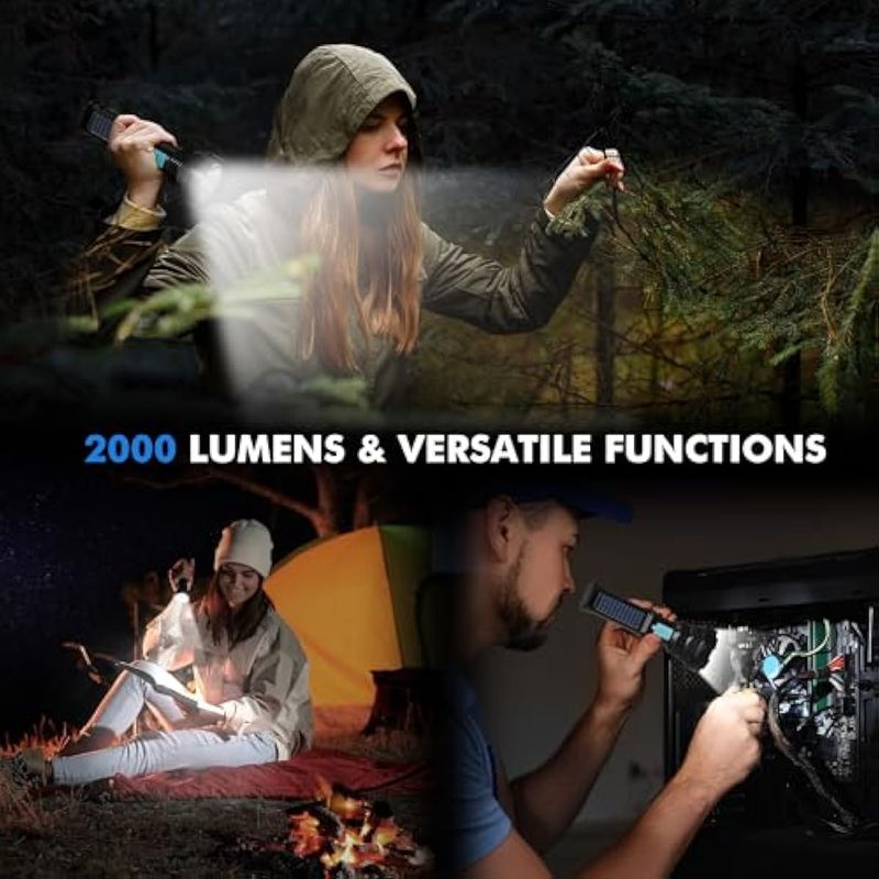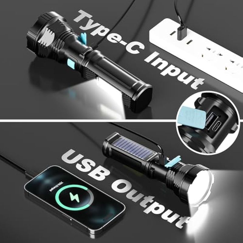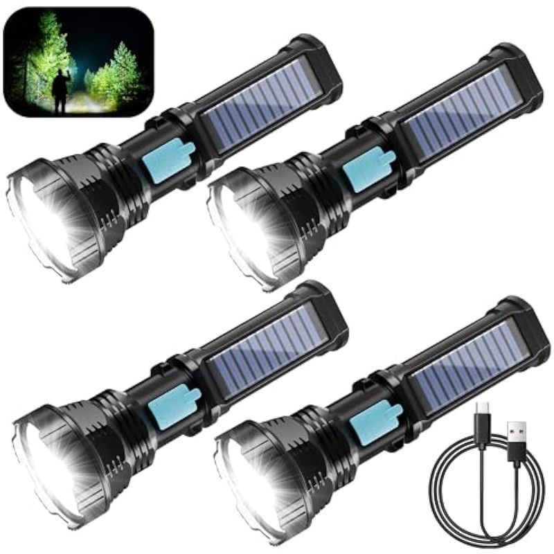 Paquete de 4 linternas LED solares/recargables, 4 modos, linternas multifunción, altos lúmenes con