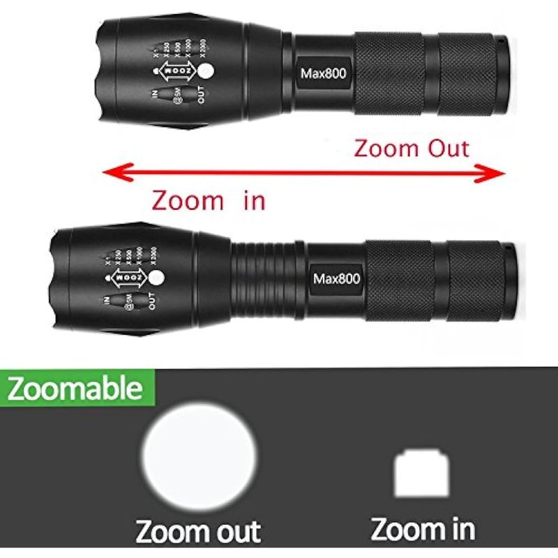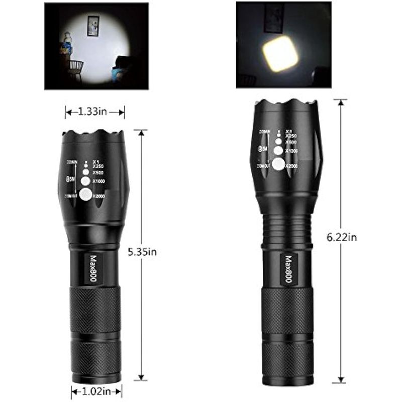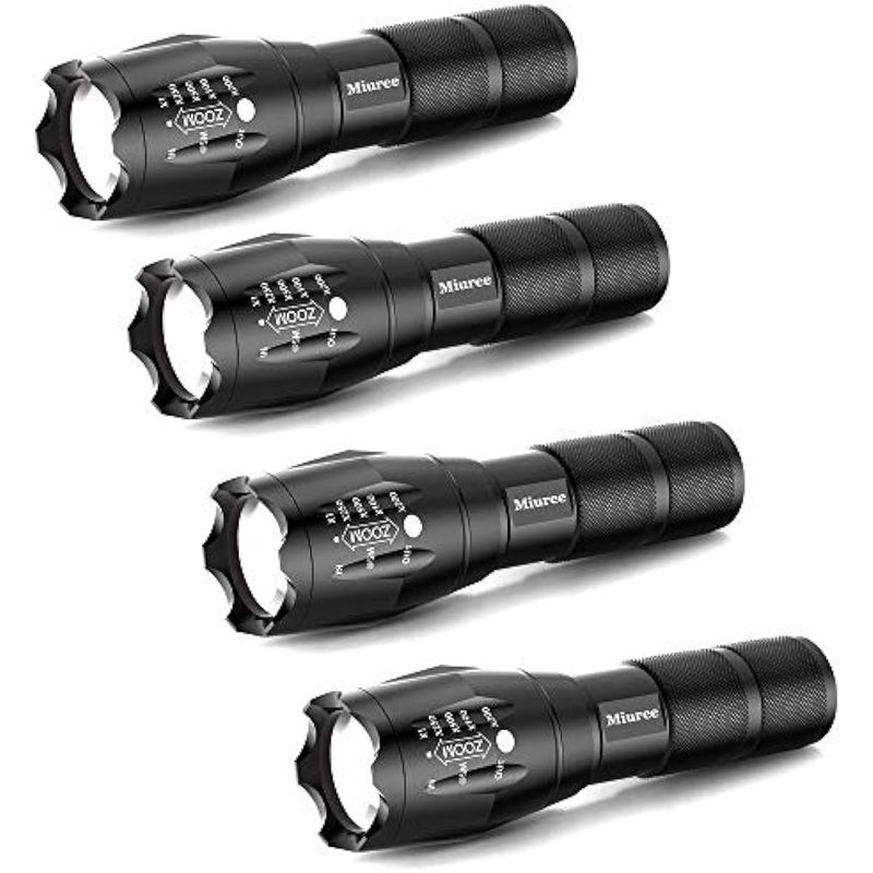 Paquete de 4 linternas tácticas LED de grado militar de 2000 lúmenes, 5 modos, con zoom, para