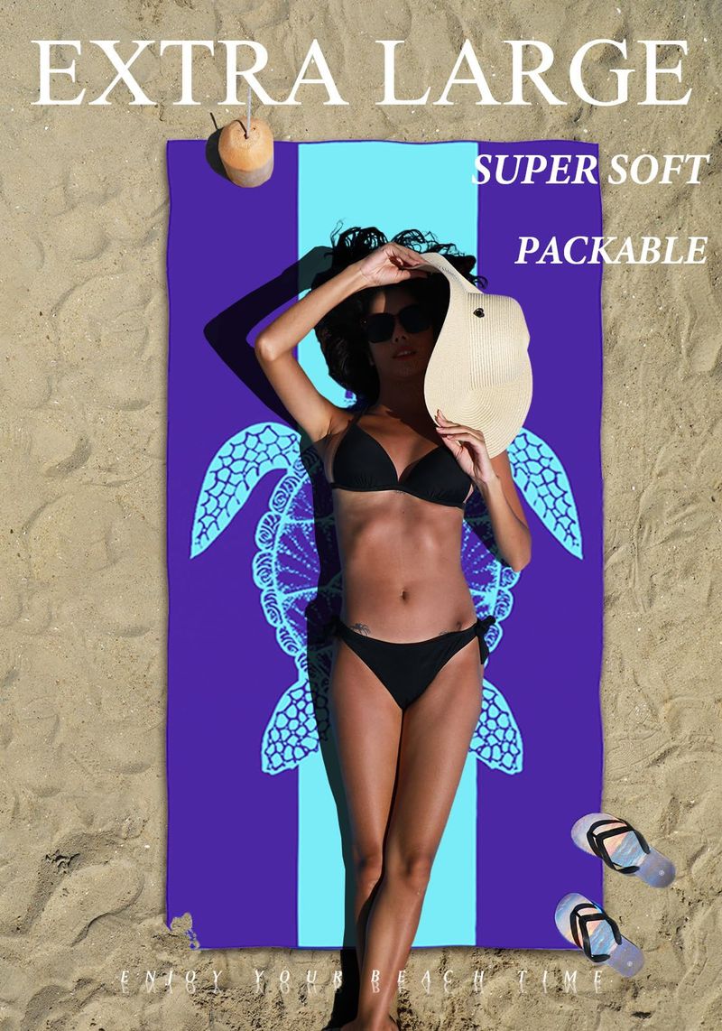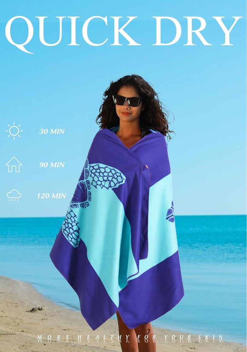 Paquete de 4 toallas de playa ligeras y delgadas de microfibra, sin arena, de secado rápido, súper