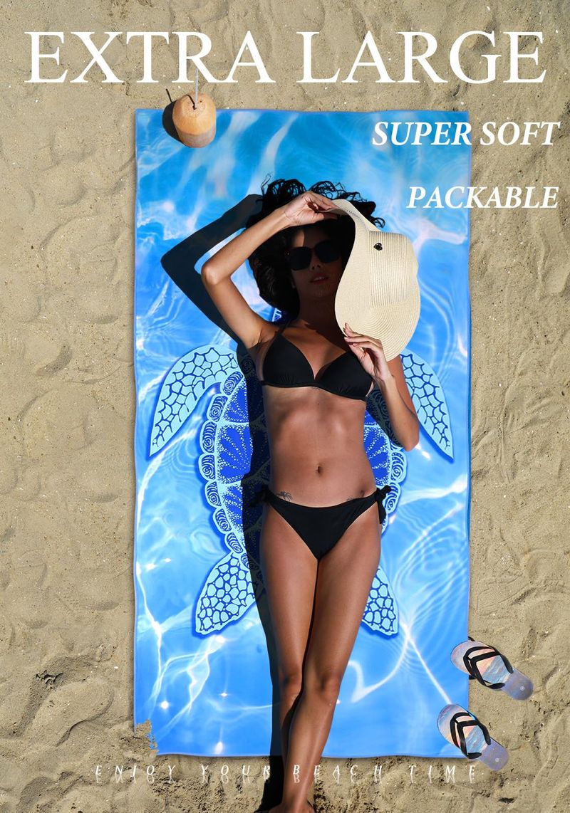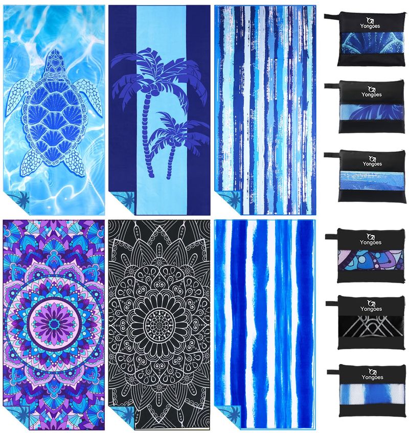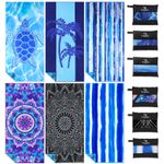 Paquete de 4 toallas de playa ligeras y delgadas de microfibra, sin arena, de secado rápido, súper
