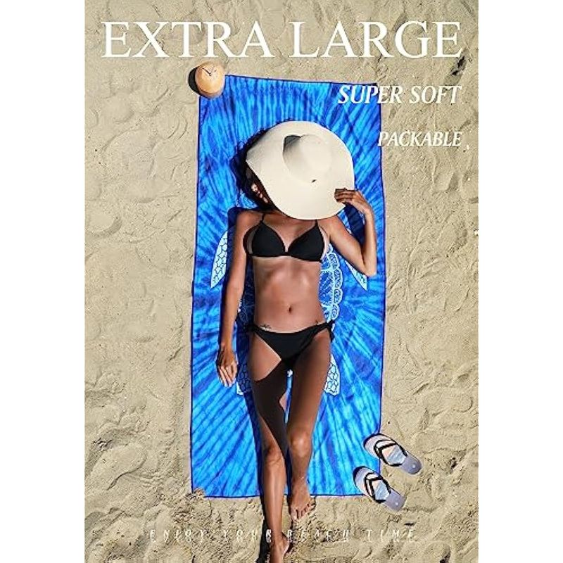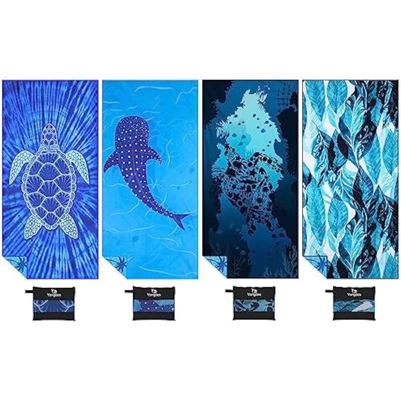 Paquete de 4 toallas de playa ligeras y delgadas de microfibra, sin arena, de secado rápido, súper
