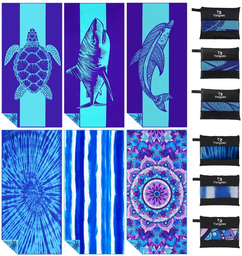 Paquete de 4 toallas de playa ligeras y delgadas de microfibra, sin arena, de secado rápido, súper