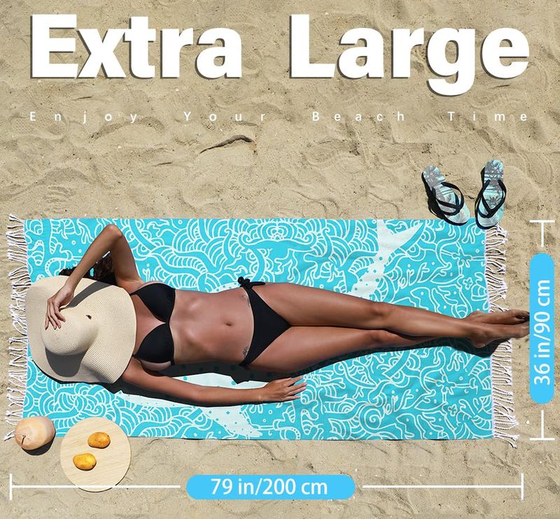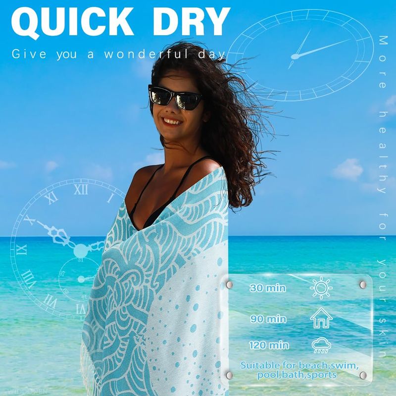 Paquete de 4 toallas de playa turcas de secado rápido, absorbentes, 10% algodón, ligeras y delgadas,
