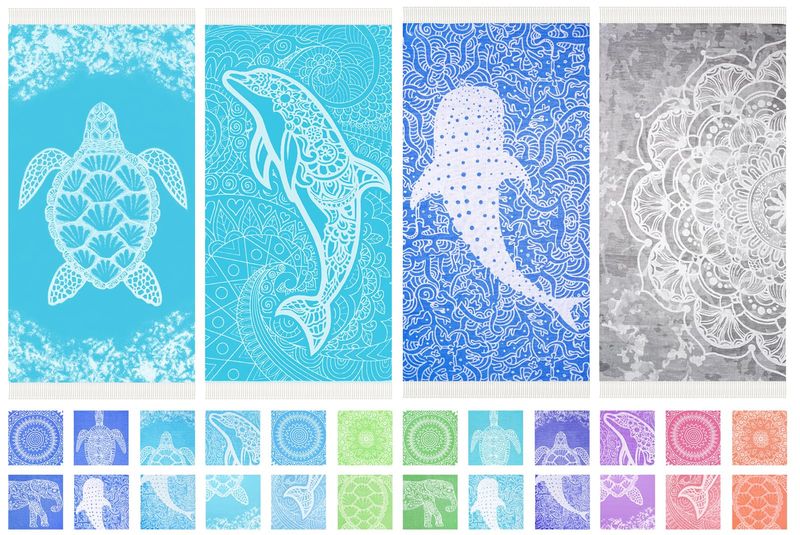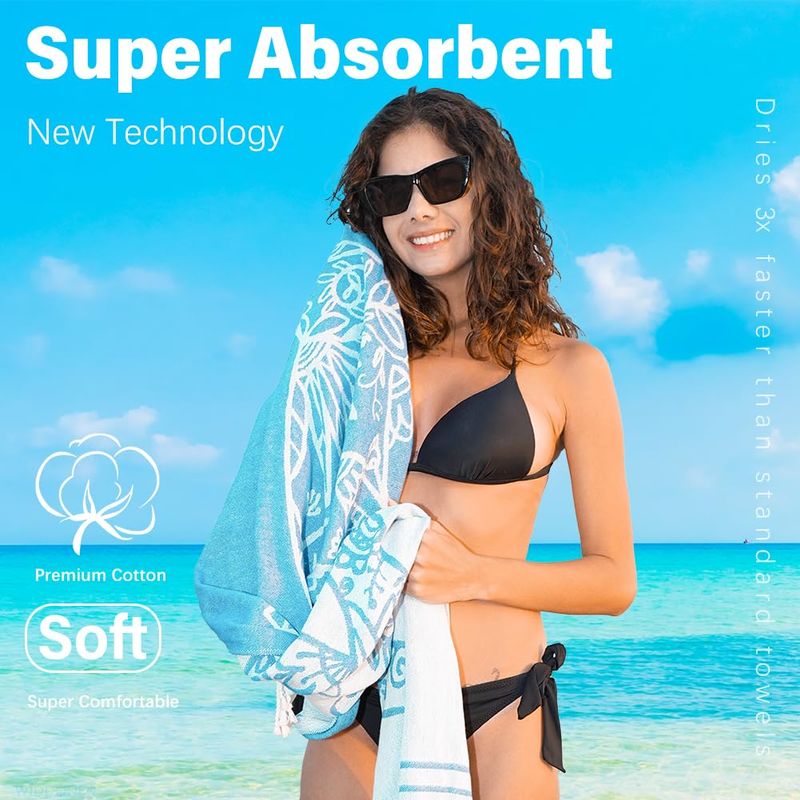 Paquete de 4 toallas de playa turcas de secado rápido, absorbentes, 10% algodón, ligeras y delgadas,