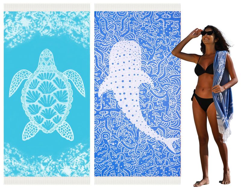 Paquete de 4 toallas de playa turcas de secado rápido, absorbentes, 10% algodón, ligeras y delgadas,