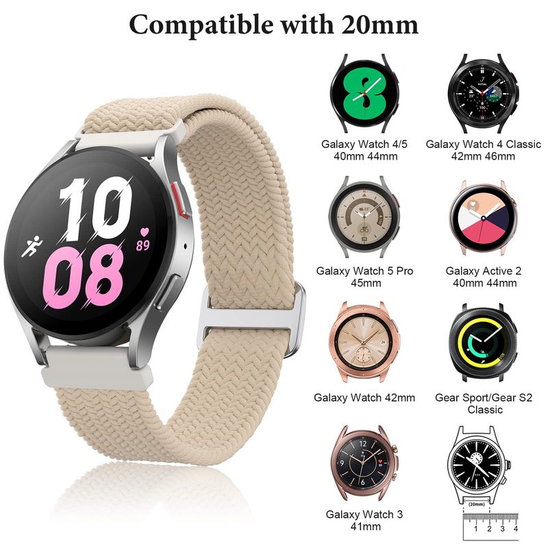Paquete de 5 correas trenzadas compatibles con Samsung Galaxy Watch 7/FE/6/5/4 de 1.575 pulgadas,