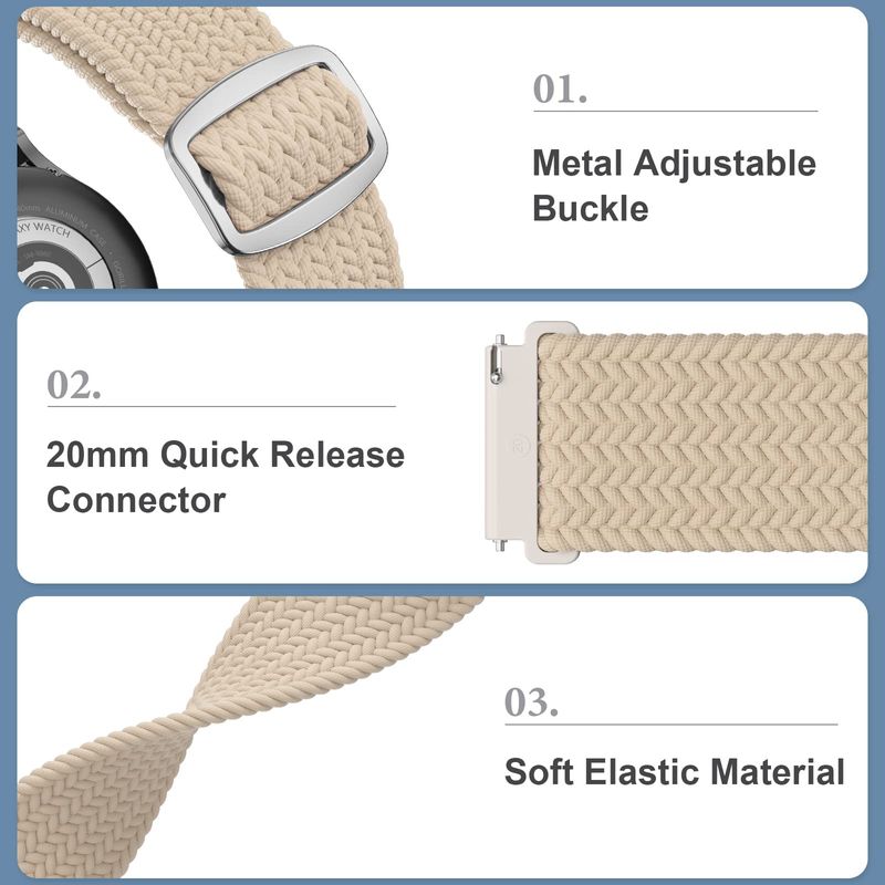 TELEFONIASMARTWATCHPaquete de 5 correas trenzadas compatibles con Samsung Galaxy Watch 7/FE/6/5/4 de 1.575 pulgadas,