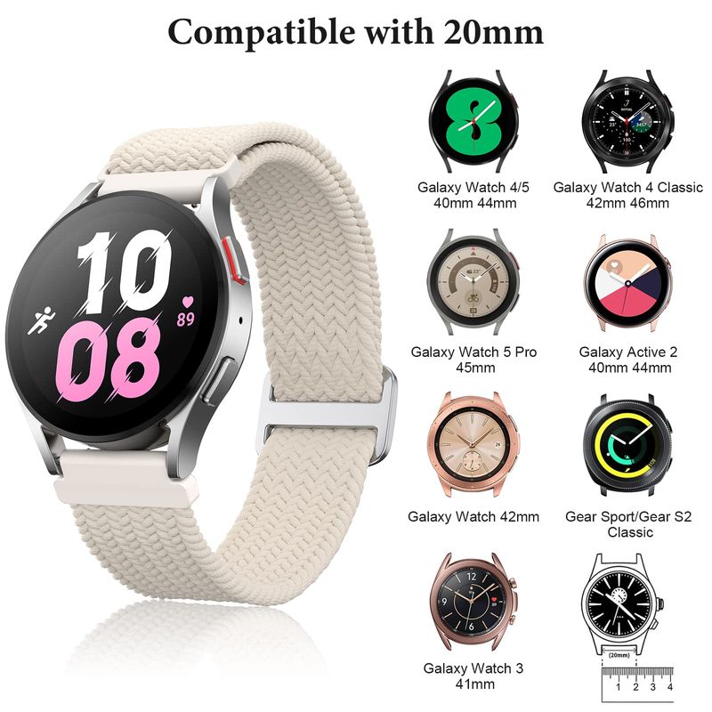 Paquete de 5 correas trenzadas compatibles con Samsung Galaxy Watch 7/FE/6/5/4 de 1.575 pulgadas,