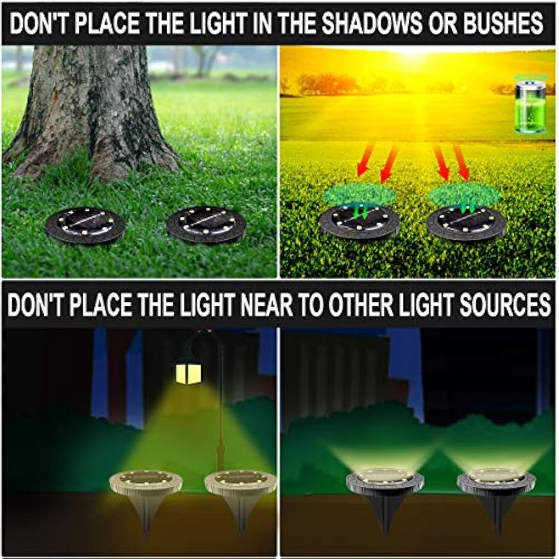 Alta calidad: nuestra iluminación decorativa de disco de paisaje exterior adopta material ABS grueso. Es resistente a la corrosión y a altas y bajas temperaturas, también es más duradera que el acero inoxidable y no se produce óxido de metal. Hay 8 tornillos en la parte posterior de las luces solares de suelo para mejorar su estanqueidad, IP68 impermeable y resistente cubierta ABS que prolonga la vida útil de más de 50.000 horas.
