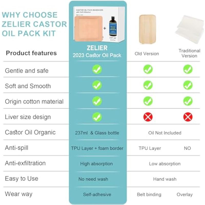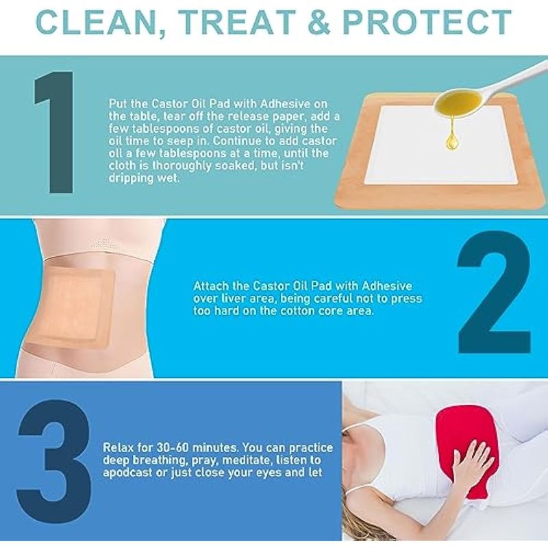 Paquete de aceite de ricino para kit de hígado, aceite de ricino orgánico prensado en frío sin