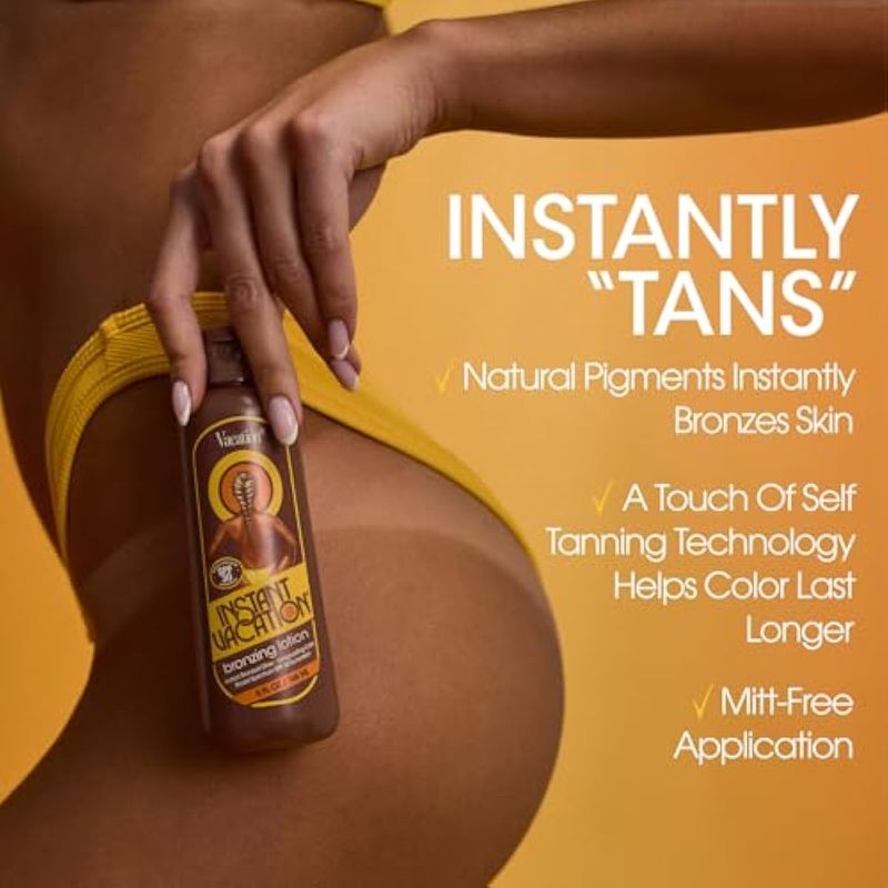 PROTECCIÓN SPF 30: Este protector solar teñido contiene SPF 30 de amplio espectro hecho para adherirse a la Ley de Arrecifes de Hawaii 104. La loción bronceadora Instant Vacation SPF 30 deja la piel con una sensación sedosa y suave con un brillo hidratado mientras protege contra los dañinos rayos UVA y UVB.