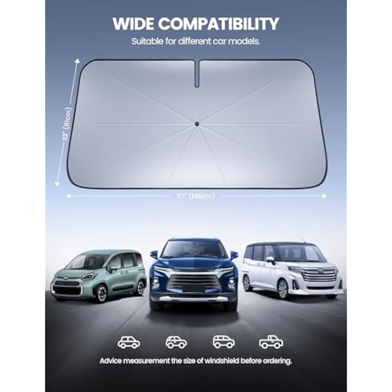 Tamaño universal: con un tamaño universal de 32 pulgadas ancho, 57 pulgadas longitud, se puede adaptar a más modelos diferentes con esqueletos de paraguas flexibles. Adaptado a sedanes, SUV, camionetas, etc. !!! Se recomienda medir el tamaño del parabrisas de tu automóvil antes de realizar el pedido para comprobar si es aplicable