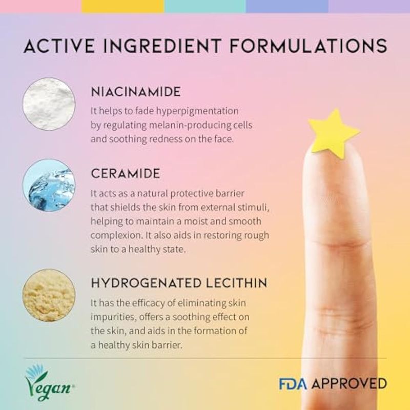 ??Parche hidrocoloide en forma de estrella?: ayuda a que las manchas se encogan con bonitos parches en forma de estrella en 5 colores pastel. Contienen ingredientes esenciales como niacinamida y ceramida para mejorar la apariencia de las espinillas durante la noche sin la necesidad de estallar.