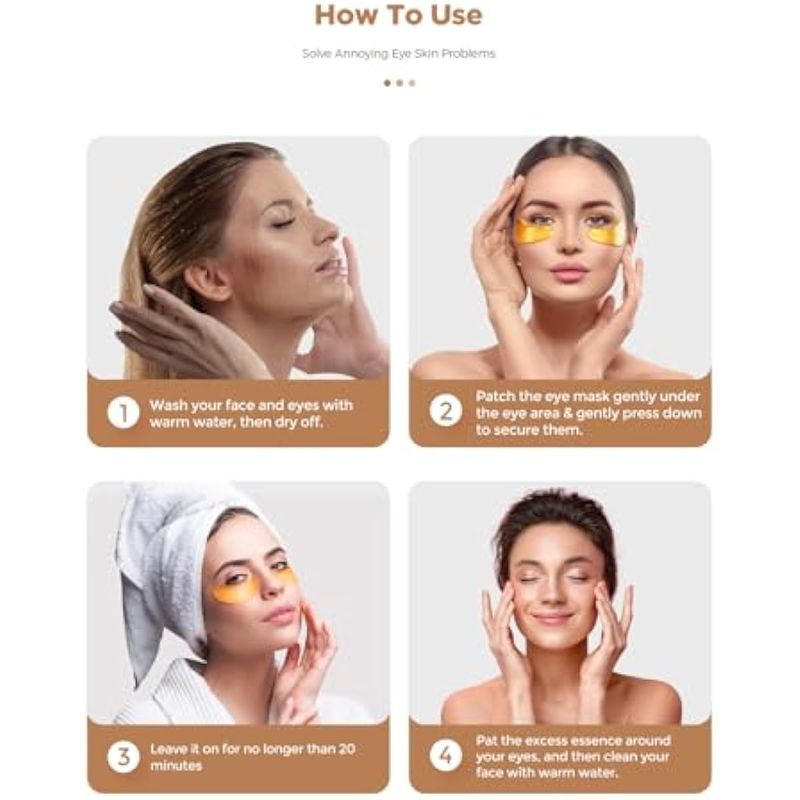 Da a la piel un brillo dorado: nuestras máscaras para ojos están especialmente formuladas para reducir la hinchazón y las ojeras debajo de los ojos, ayudar a minimizar las arrugas y líneas finas para un aspecto más juvenil, y se empaquetan individualmente en pares para una fácil portabilidad sobre la marcha. Nuestras máscaras de ojos no solo refrescan tu piel, sino que también son excelentes regalos de despedida de soltera y boda o rellenos de bolsas de regalo.