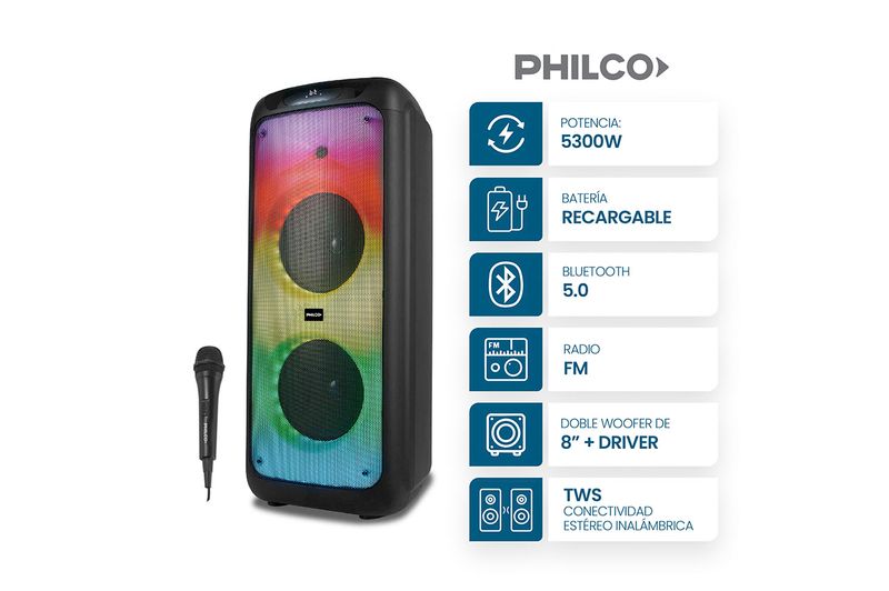 Parlante Torre Portátil Philco 5300w Full Led TPL4500