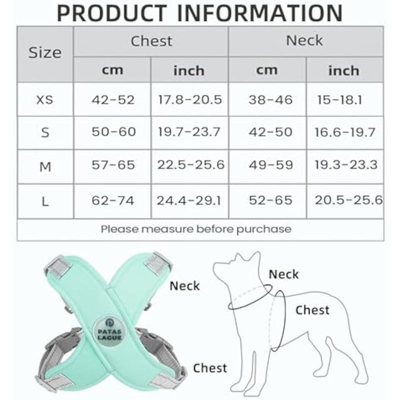 MASCOTASPERROSAccesorios para PerrosPatas Lague Arnés para perro con correa, ajustable, suave, acolchado, chaleco para perro, sin