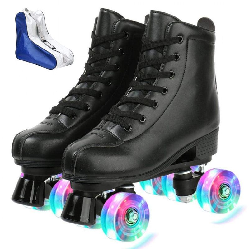Patines de piel sintética para hombres y mujeres, tipo botines, con doble fila de ruedas, para
